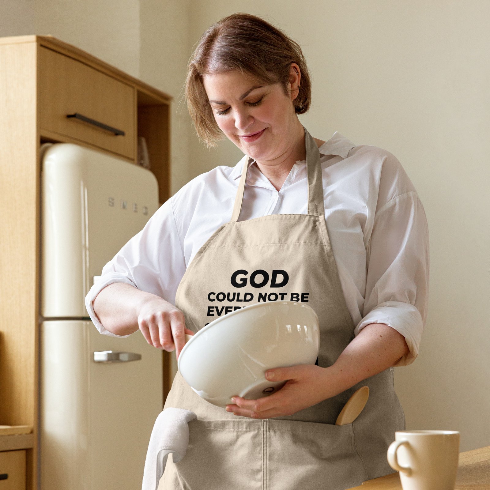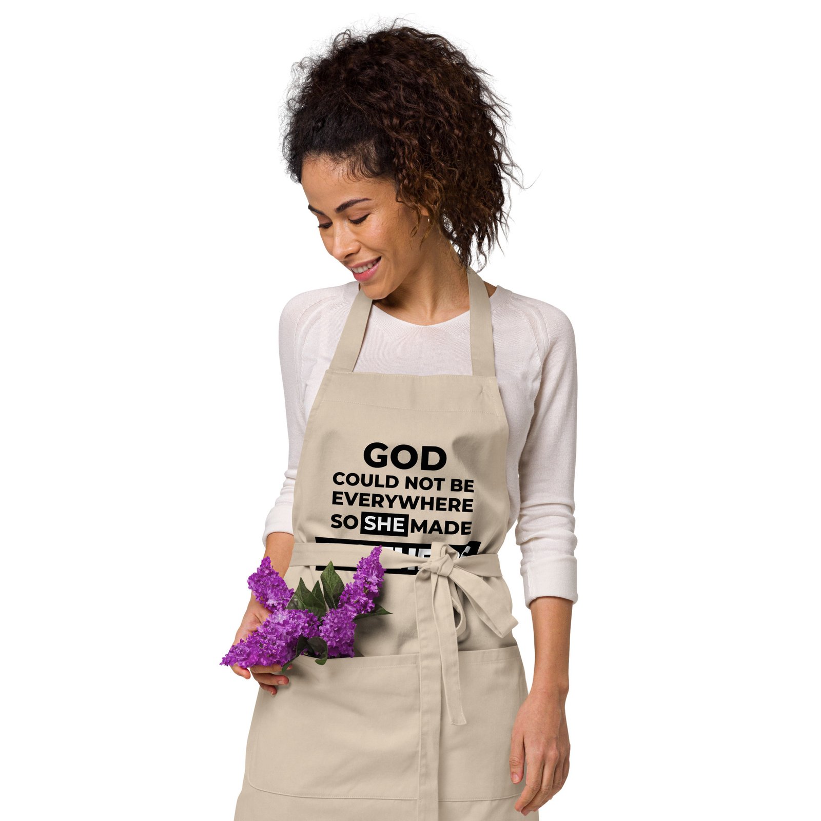 Whether you’re crafting a simple lunch or a fancy dinner, an apron can be your shield against food spills, heat, or dirt. Order the 100% organic cotton apron and rock your kitchen in style!
