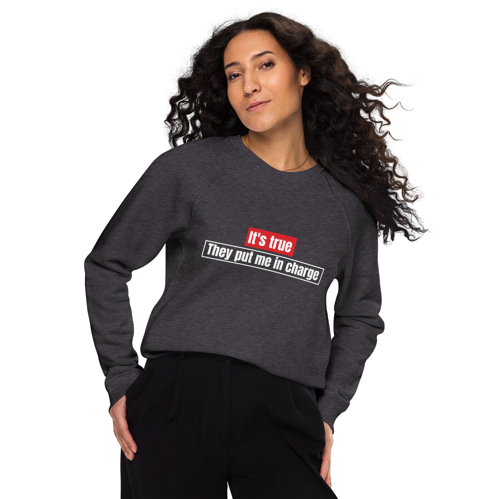 To do list: feel comfy and look stylish at the same time. Mark both tasks as done with the unisex organic raglan sweatshirt. Its brushed fleece lining will make you feel like you’re being hugged by a cloud of softness . . . and the 100% cotton exterior will ensure a smooth feel on the outside.