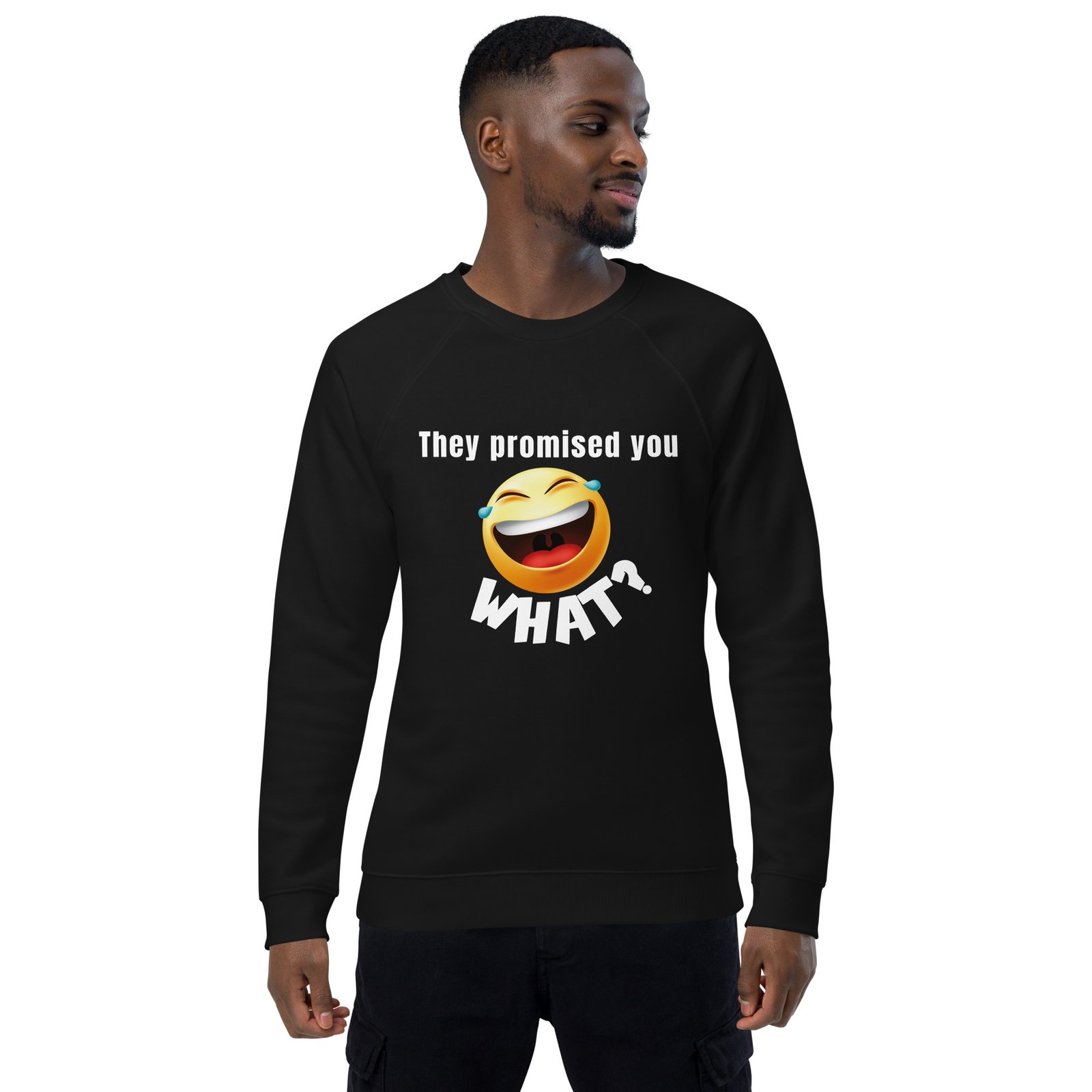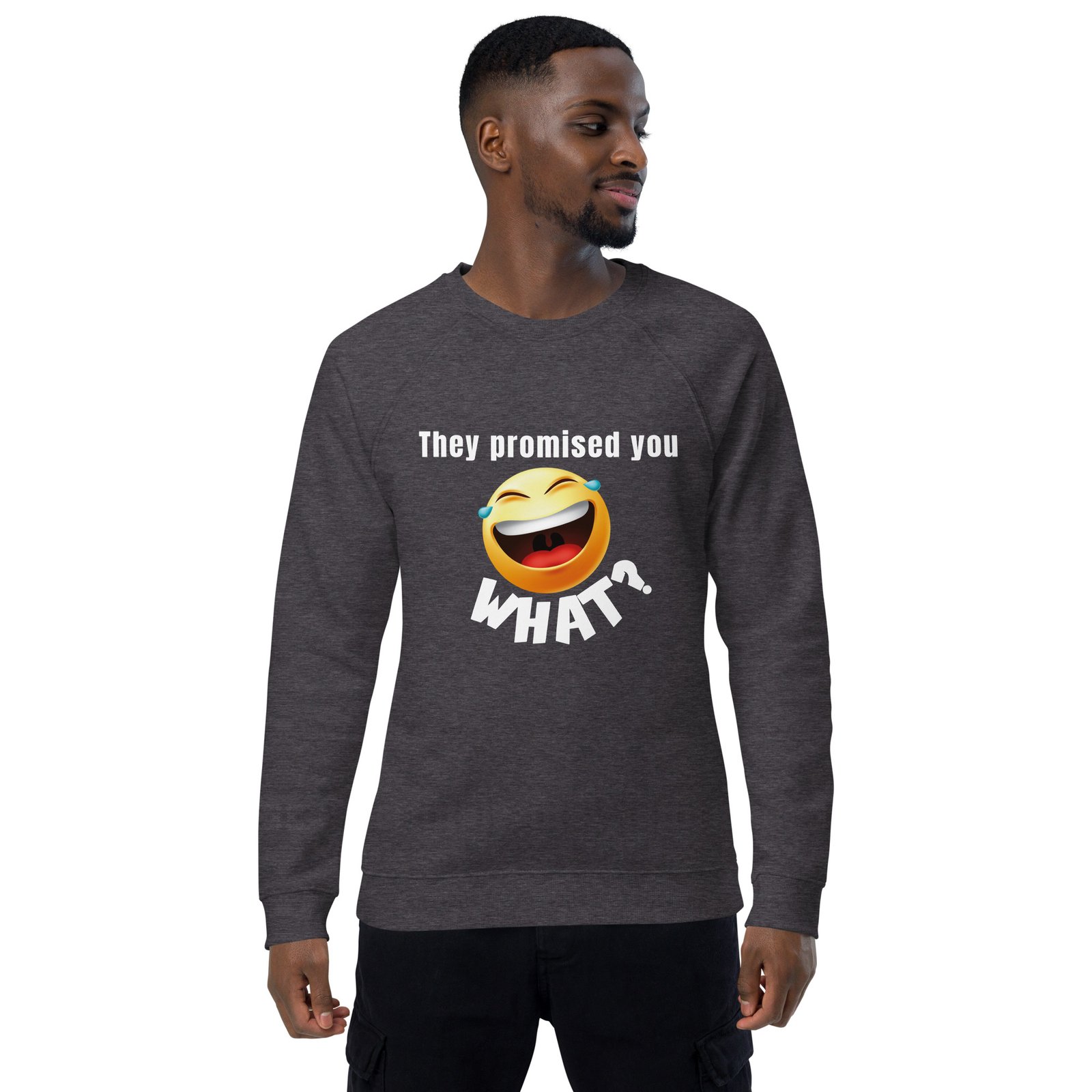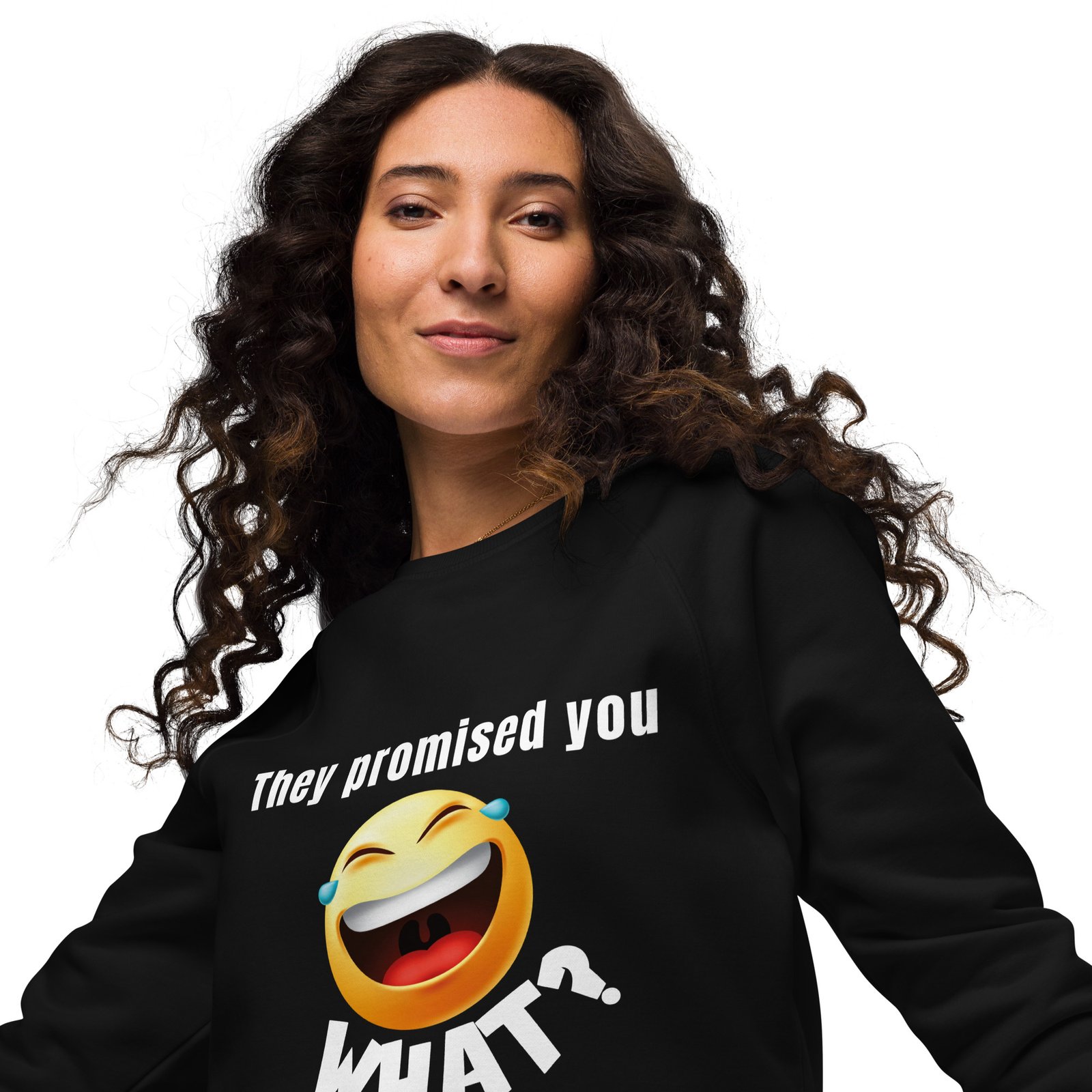 Unisex organic raglan sweatshirt – They promised you what, dark options
