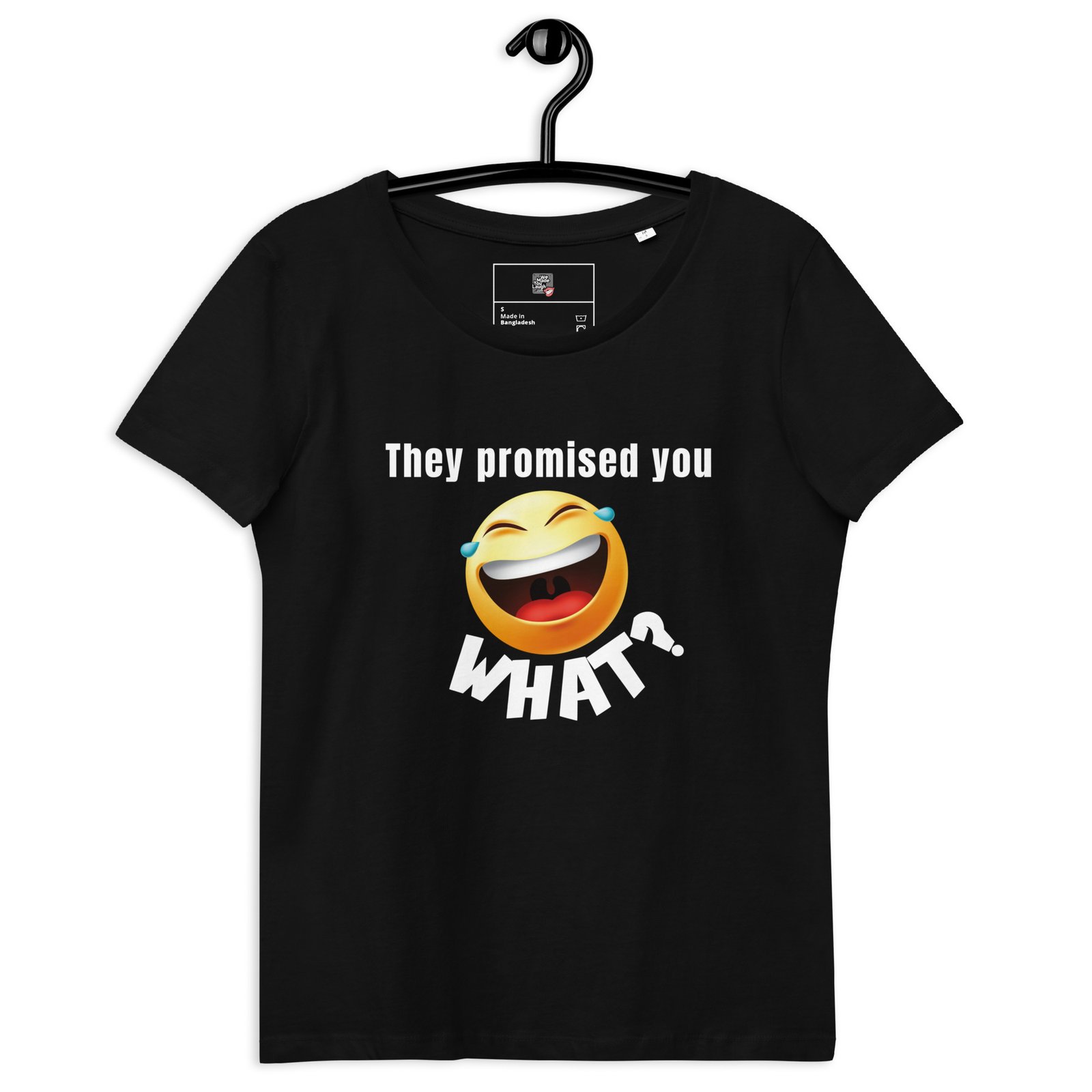 Be the first to review “Organic cotton women’s fitted t-shirt – They promised you what, black”